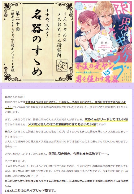 また、BL大好きリスちゃんが熱量たっぷりにBL紹介するコラムや、漫画家天城れの先生のBL美味しいところだけを楽しめるコミックエッセイなど、BL情報ページ Coffret la Roseraie(カフレ・ラ・ロズレ)も、ラ・ロズレ会員登録で、全コンテンツお楽しみいただけます!