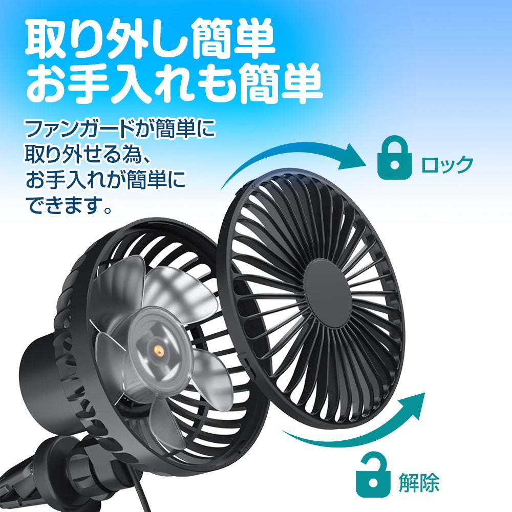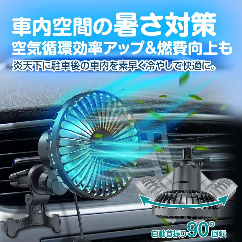 ファンの向きを変えて広範囲に送風することで、車のエアコン効率を高めます。暖房にも使え一年中使えます。