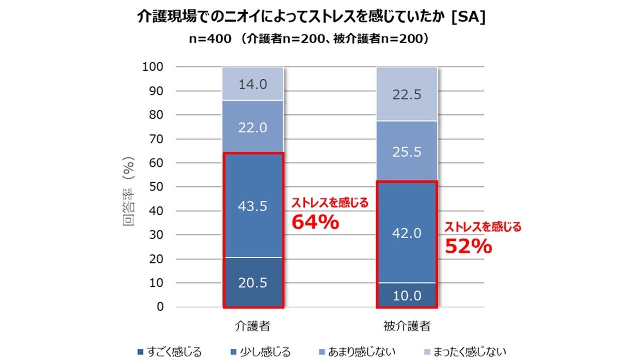 <介護現場の“ニオイ”に関する実態調査>お悩みは「3K(きつい・汚い・危険)」ではなく、「4K(くさい)」だった!介護者・被介護者いずれも過半数は“ニオイ”によってストレスを感じていることが判明!