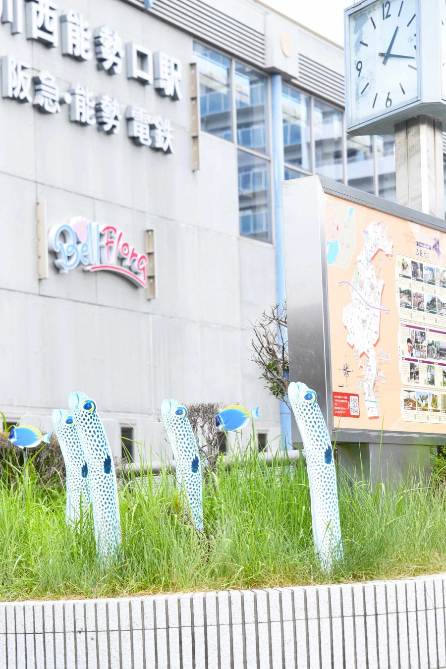 兵庫県川西市では、市制70周年記念事業の一環として、川西能勢口駅前広場や隣接する商業施設、アステ川西内が、市出身の水中写真家 鍵井靖章さんが撮影した海の生き物で装飾されています。