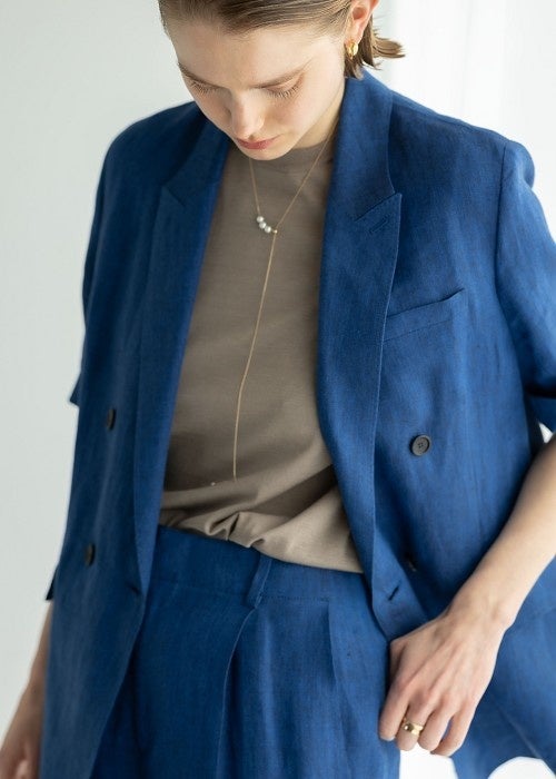 展開するのはブランドの世界観を感じていただけるアイテムを厳選した、コンパクトなラインナップ。定番として支持されている仕立てにこだわったジャケットやデニムを軸に、リネンやラミーサテンの軽やかなワンピース、シャツ感覚で羽織れるジャケット・パンツ・ブラウスのカセットなど、素材の心地よさと着たときの美しさが自然と調和し、移動の多いシーンでも活躍するアイテムを取り揃えています。