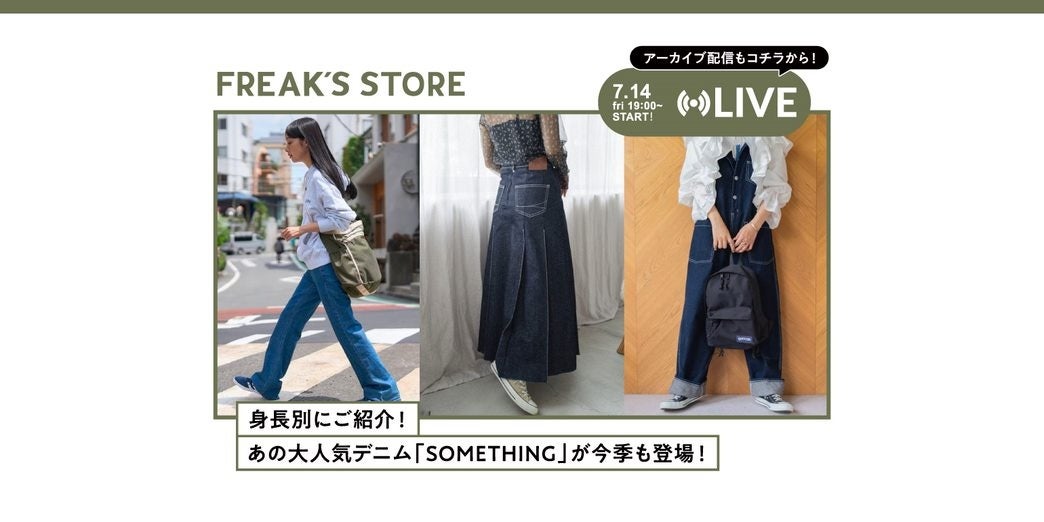 女性のためのジーンズブランドとして1979年に誕生した「SOMETHING」。毎シーズン大人気のFREAK’S STORE別注シリーズが発売開始。今季はティアードスカートやカーブワイド型などトレンドを取り入れた、ここでしか買えない特別なアイテムをラインナップ。