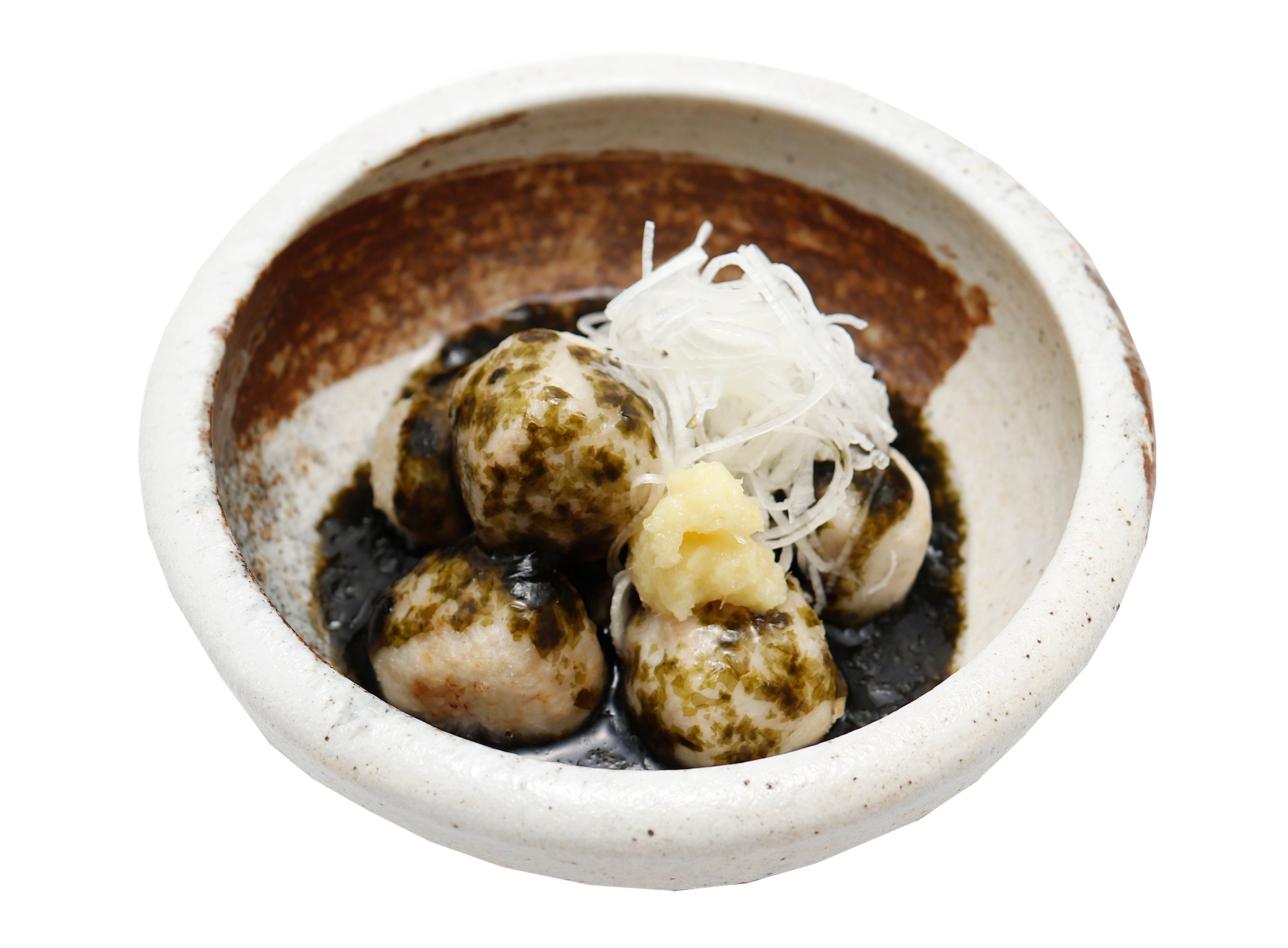 白出汁の餡に海苔を溶かして漆黒を表現。海苔の餡を絡めてお楽しみください。