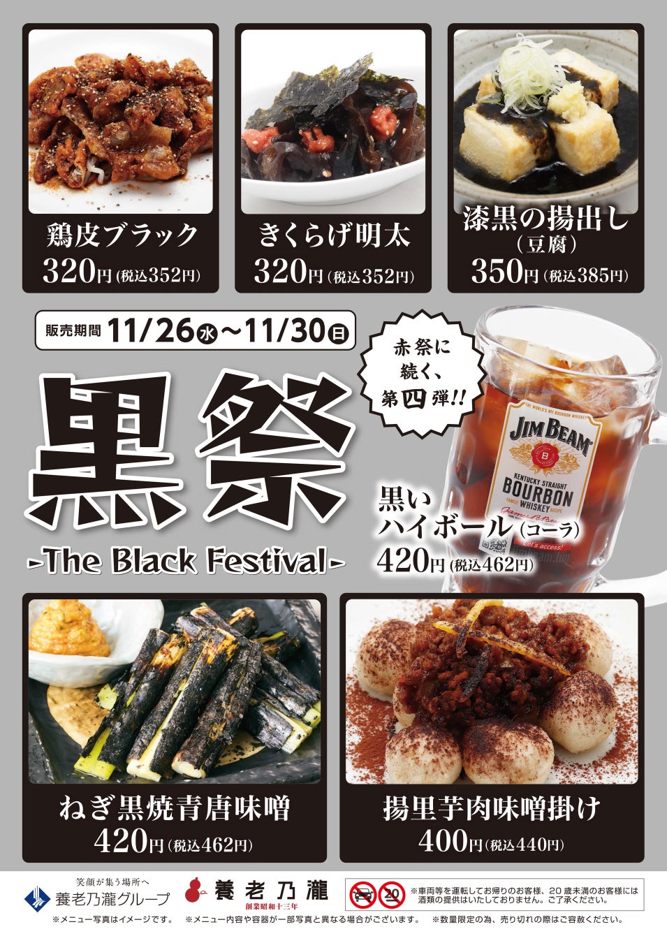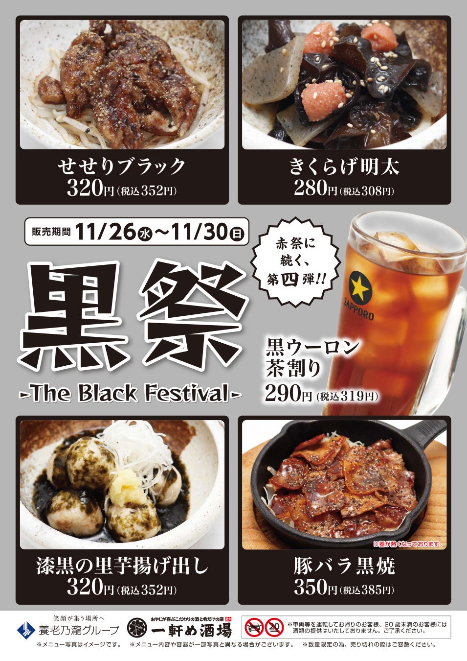 今年もやります!ブラックフライデーならぬ『黒祭 -The Black Festival-』2025年11月26日(水)~11月30日(日)養老乃瀧・一軒め酒場の対象店舗にて