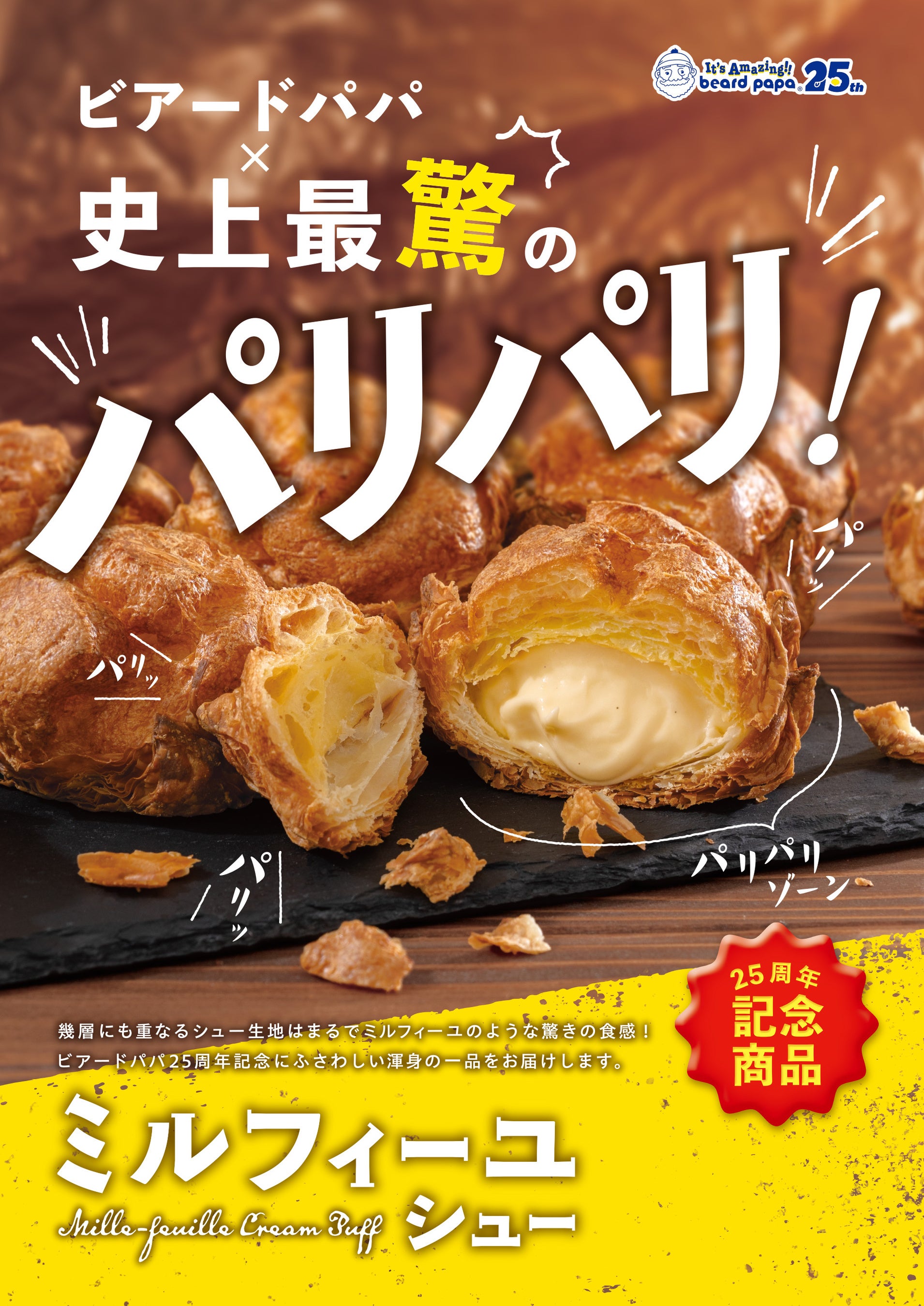 1日で39,000個売れた「史上最“驚”」の「パリパリ食感」が帰ってくる!ビアードパパの25周年記念商品“ミルフィーユシュー”が12月限定で再登場!