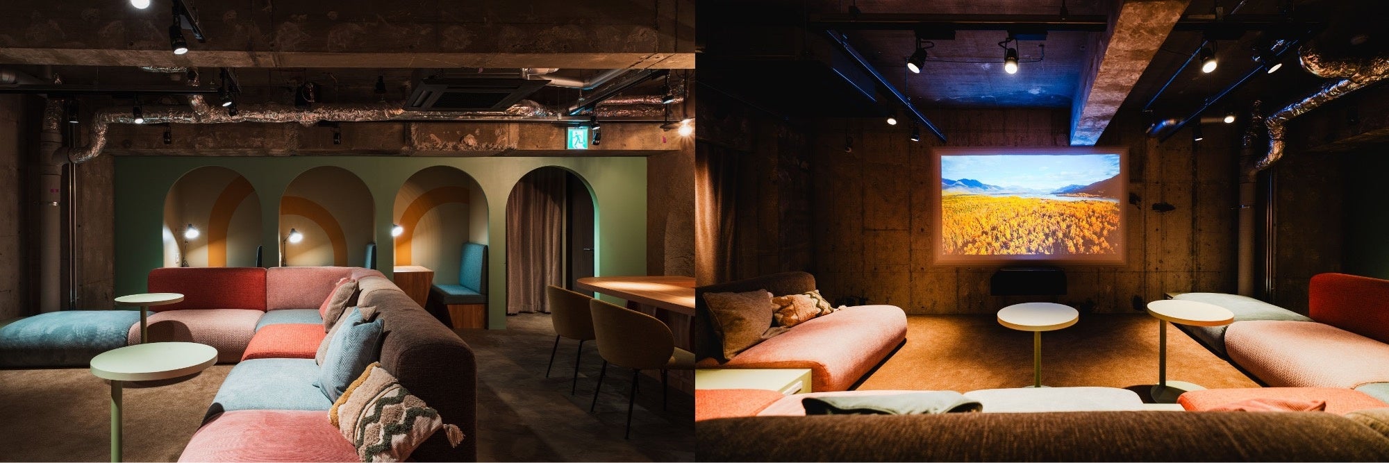 空間内には贅沢なソファスペースを2箇所配置し、大型テレビの前のソファスペースでは食事をしたりお酒を飲みながら、ゲームやテレビなど映像を一緒に楽しむことができます。
