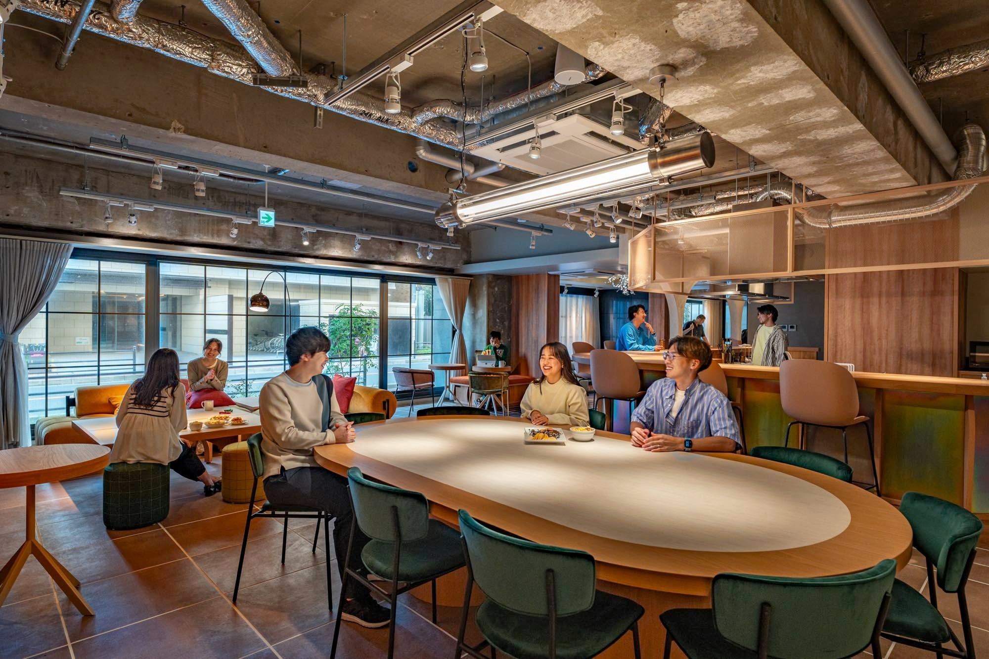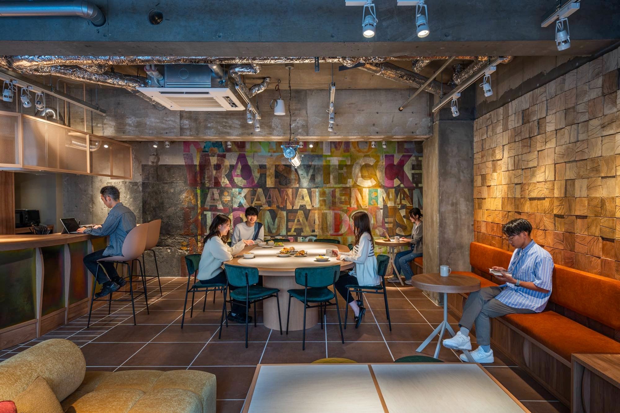 ネイバーズ江坂では、利用目的が異なる利用者がひとつの空間でありながらも自然に調和し、それぞれ居心地良く過ごせるよう、レイアウトやデザインに工夫を施しました。