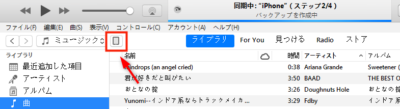 Step1:お使いのiPadをコンピュータに接続するために、iPad用のUSBケーブルを使用します。次に、左上にあるiPhoneアイコンをクリックします。