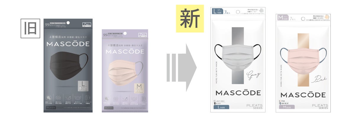 株式会社サン・スマイル(本社:東京都港区/代表取締役社長:田中徳也)は、ファッション性と機能性を両立させたマスクブランド『MASCODE(マスコード)』から、デザインと機能を大幅リニューアルしたプリーツタイプを、2022年8月20日(土)より全国のバラエティショップ、量販店、ドラッグストアにて順次販売いたします。