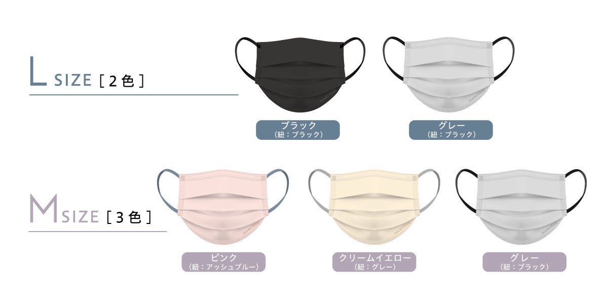 「MASCODE(マスコード)」は、ファッション性と機能性を両立させ、「マスクがもっと楽しくなる」というコンセプトで、新たなマスクのスタイルを提案するブランドとして、2020年11月に登場いたしました。自社公式オンラインショップでは、予想以上の反響により、入荷してもすぐに完売、さらにインターネットショッピングモール「楽天市場」内の自社ショップは、2022年2月のジャンル賞※を受賞するなど、多くの方にご支持いただいております。さらにファッションに合わせて選んでいただけるように、プリーツシリーズは、カラー展開・デザインともに全面リニューアル。Lサイズは、ブラック、グレーの2種、Mサイズは、ピンク、クリームイエロー、グレーの3種、全5種類をご用意。Mサイズは、パーソナルカラーに基づいた肌なじみのよいカラー展開となっており、メイクやファッションに合わせてお選びいただけます。