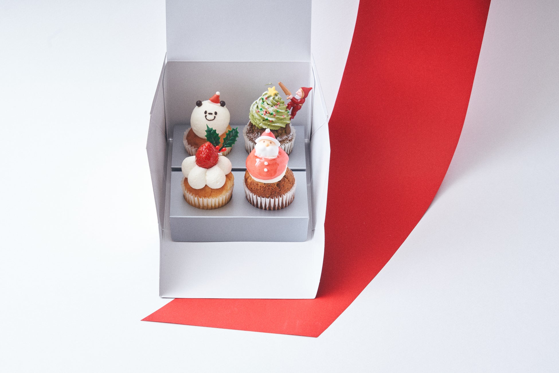 友人や同僚との集まりが多くなるホリデーシーズン。一人一人にひとつずつ、簡単&気軽にみんなで分けあえる、たのしいクリスマスカップケーキを詰め合わせたBOXセットです。人気カップケーキをクリスマスの特別仕様でご用意いたします。