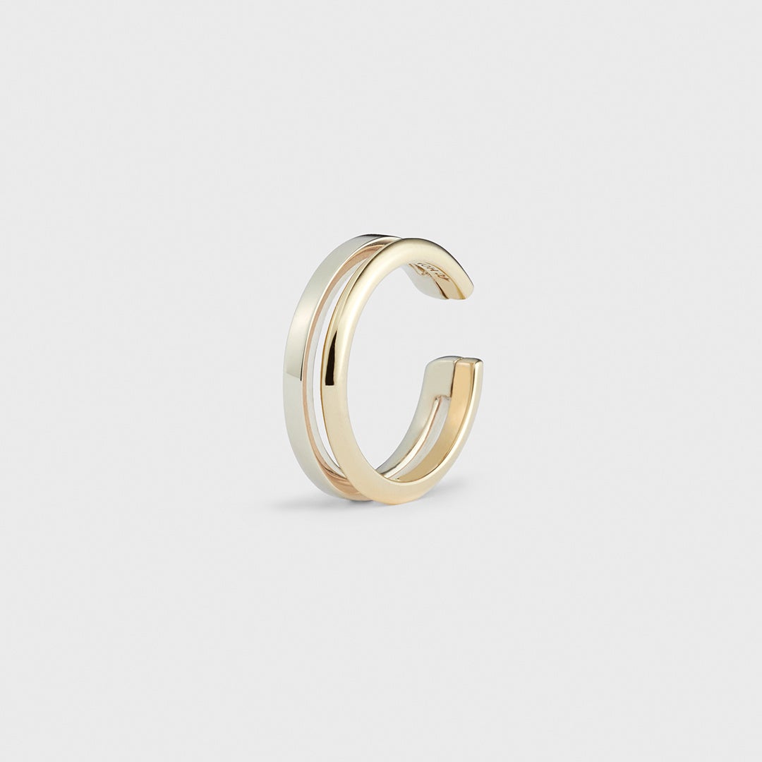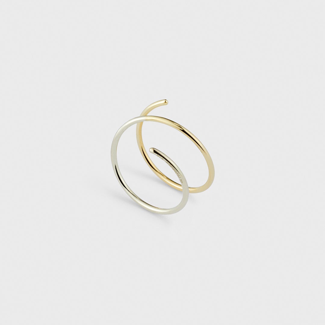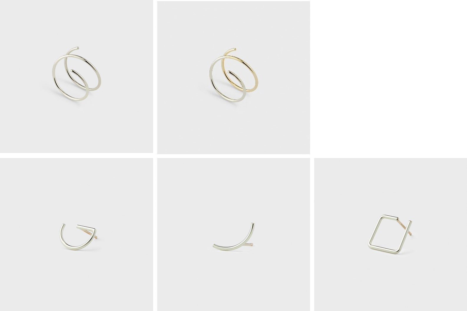 ミニマルなワイヤーワークでシーンを選ばずに使える耳周りジュエリー。コイルのように回転したワイヤーピアスは、ひとつでまるで2連のピアスを着けているようなデザイン。耳元に繊細なカーブやスクエアモチーフを添える片耳ピアスは、本体がホワイトゴールドでポストがイエローゴールドのバイカラー。こなれたコンビカラーで、耳元からあなたらしい個性を煌めかせて。