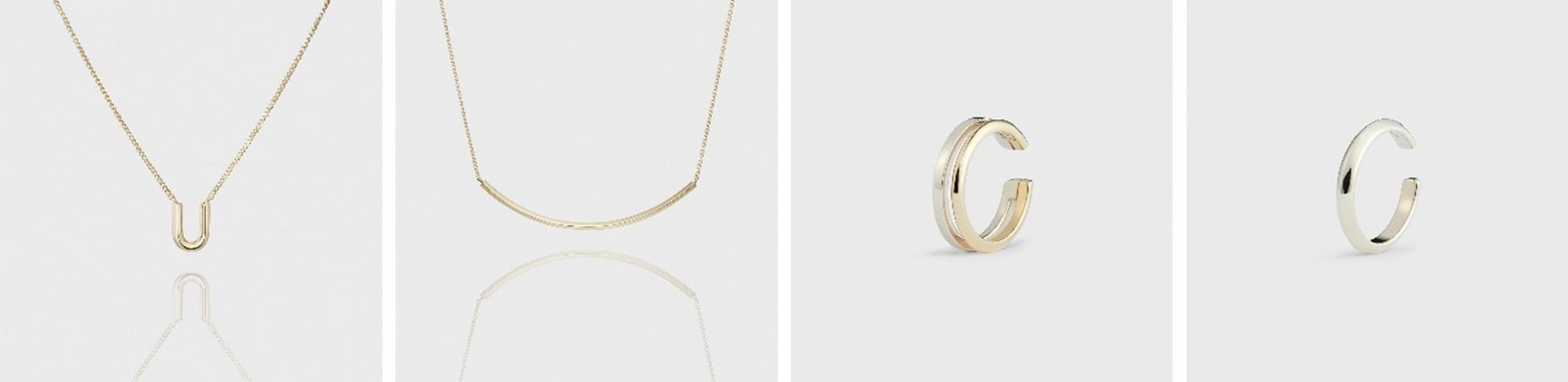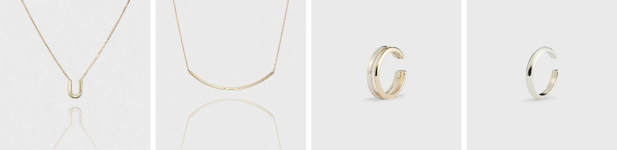 カーブラインラインのモチーフをチェーンで繋いだクールな印象のネックレス。力強いホワイトゴールドの存在感にエッジの効いたシンプルなデザインが魅力です。シャープに象ったイヤーカフは、イエローゴールドとの2連風コンビカラーとプレーンなホワイトゴールドの地金がシンプルな魅力を放つ2パターンご用意。身に着けた方の表情をモダンに照らすホワイトゴールドが主役のジュエリーに、あなたらしいカラーを重ねて。