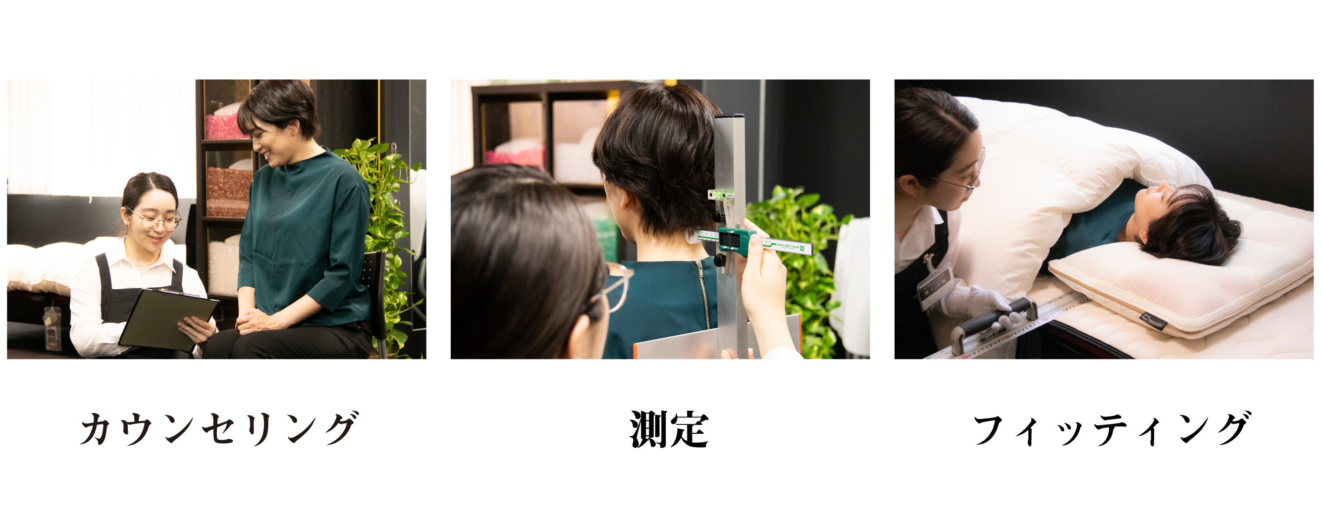 まくらぼは、睡眠のプロが一人ひとりのお身体3ヶ所のサイズを測定し、最適なサイズや固さに整えたオーダーメイド枕を作るお店です。