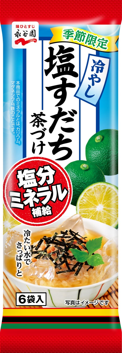 株式会社 永谷園(社長:成田 健一、東京都港区)は、暑い季節にサラッと食べられ、塩分・ミネラルが補給できるお茶づけの素「冷やし塩すだち茶づけ」(税抜250 円)を、今年も春夏限定で2023 年3 月6 日(月)より全国で発売いたします。すだちの爽やかな風味を感じられる“冷やし茶づけ”は、さっぱりとした味わいで、徐々に気温が高くなるこれからの季節に、火を使わずに調理できる手軽さも嬉しいポイントです。