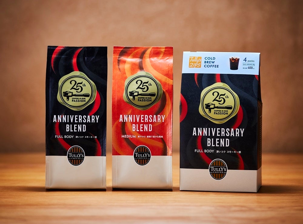 「タリーズアニバーサリーブレンド ミディアム」「タリーズアニバーサリーブレンド フルボディ」「タリーズジップス コールドブリューコーヒー アニバーサリーブレンド」を6月15日(水)より発売
