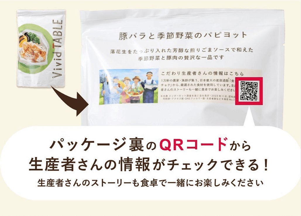 「Vivid TABLE」は共働き世帯や子育て世帯などの忙しい日々の中で食卓を支える層に向け、産直通販サイト「食べチョク」がプロデュースするプライベートブランドの冷凍食品です。レンジで5分程度加熱するだけで彩り豊かな料理を手軽に食卓に並べることができます。食事準備の時間短縮や栄養バランスの向上をサポートすることを目的に、2024年よりサービスを提供開始しました。2025年6月と8月に新メニューを追加し、現在は全8商品を展開中です。また、ミシュラン「セレクテッドレストラン2025」にも選出された「LA BONNE TABLE」の中村和成シェフが味を監修しています。