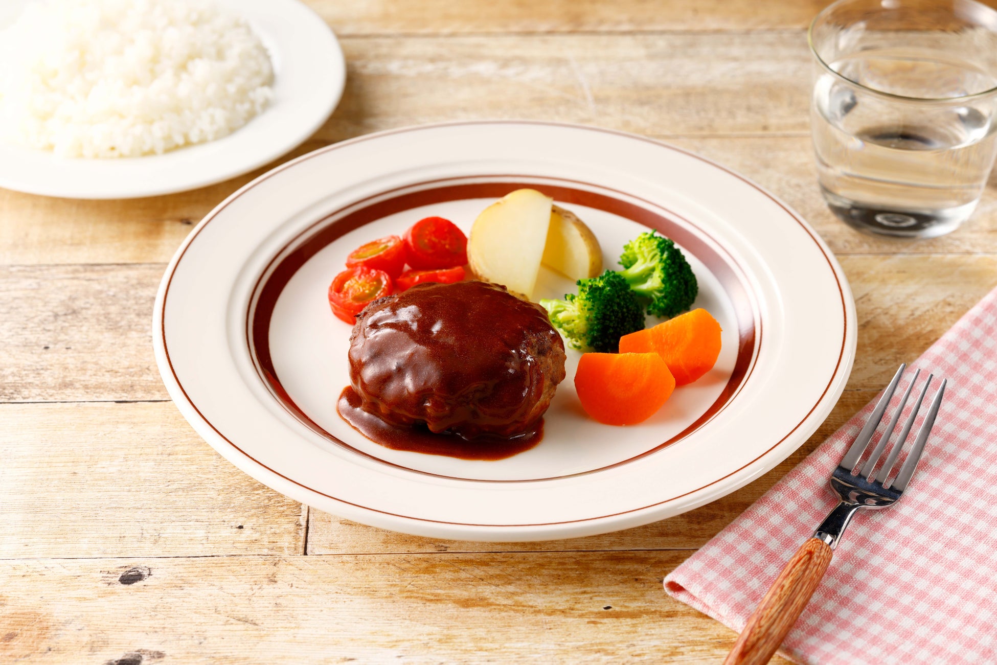 ジューシーなトマトが溶け込んだ野菜たっぷりの軽やかなハンバーグです。