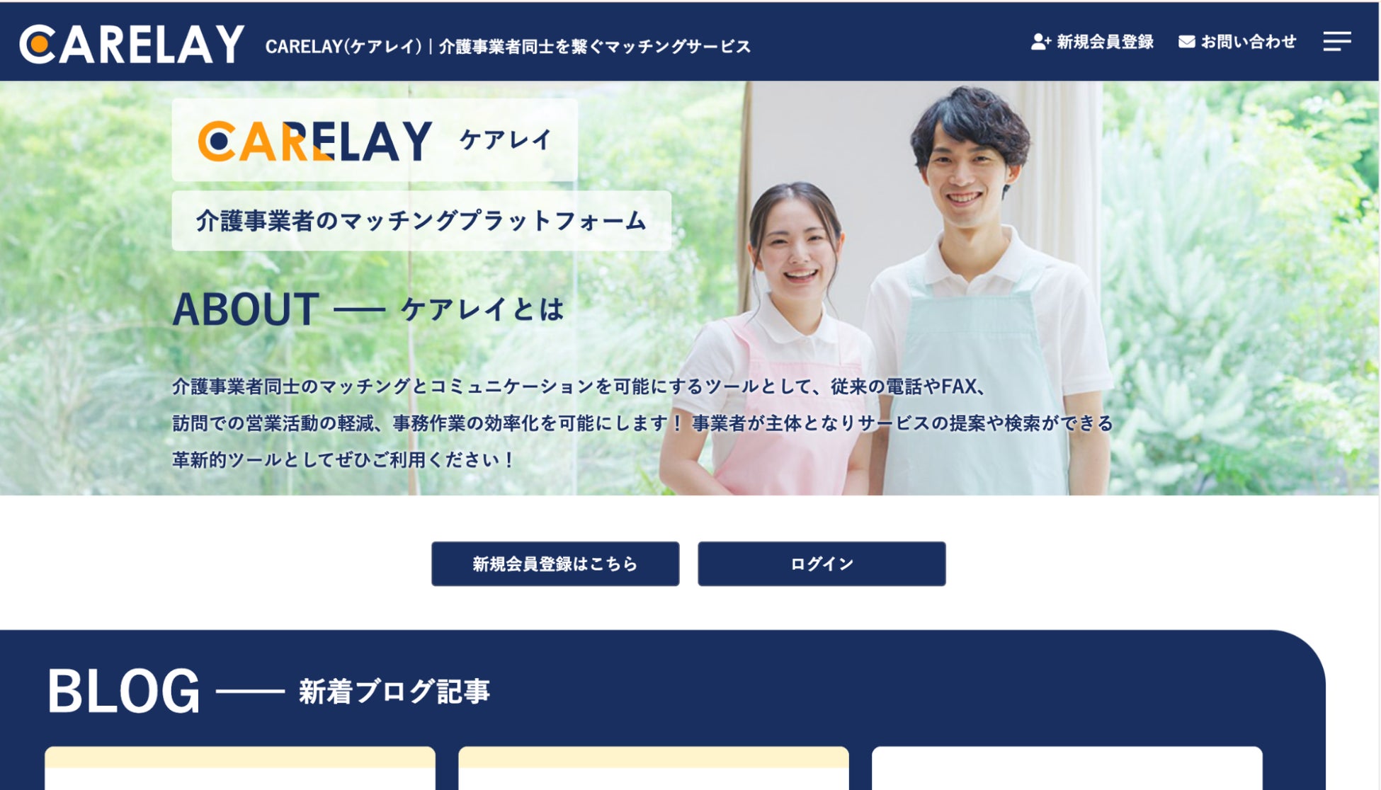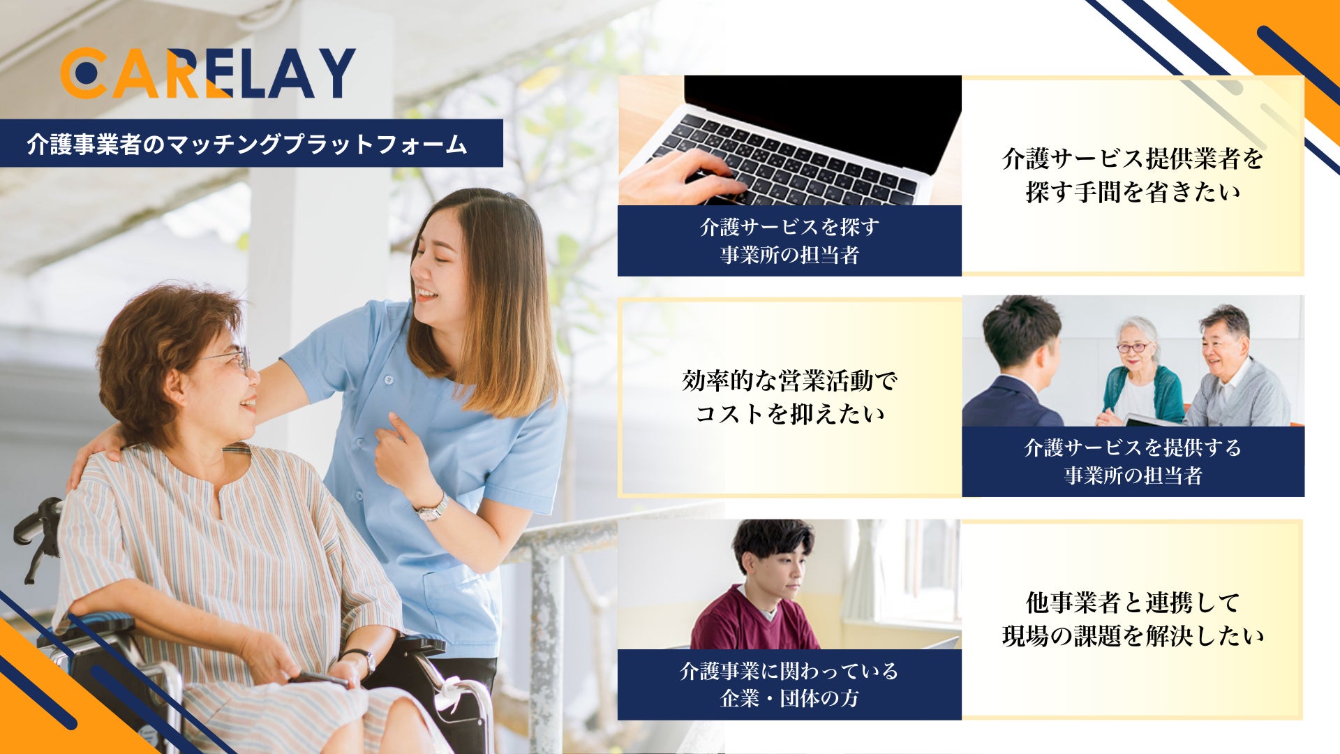 当社が開発に携わった、介護事業者向けマッチングプラットフォーム「CARELAY」は、こうした背景の中で介護事業者同士が効率的にコミュニケーションを図り、サービス提案や検索を行うための革新的なツールとしてリリースされました。