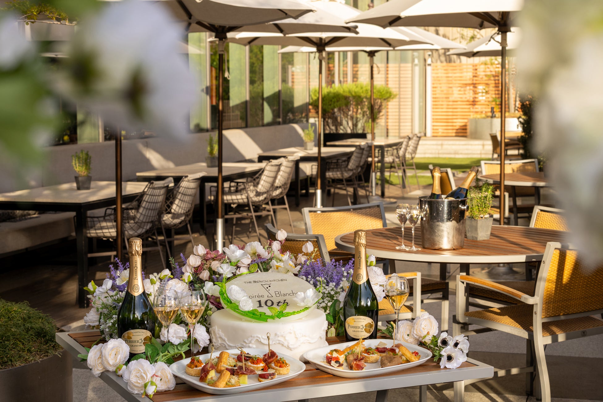 「Soirée Blanche ~ソワレ ブランシュ~」は、世界屈指のリゾート地である南フランス・コートダジュールのサントロペで誕生したといわれる“オールホワイト”をドレスコードとしたイベントです。オールデイ ダイニング「フレンチ キッチン」の夜風が吹き抜ける開放的なテラスや店内で、シェフが腕によりをかけてご用意するお料理やシャンパーニュなどをお好きなだけお楽しみいただけます。会場内には、テーマカラーであるホワイトを基調とした特別なライティングや装飾を施すほか、オールホワイトのファッションに身を包んで集まったゲストを、ライブミュージックやDJが盛り上げます。