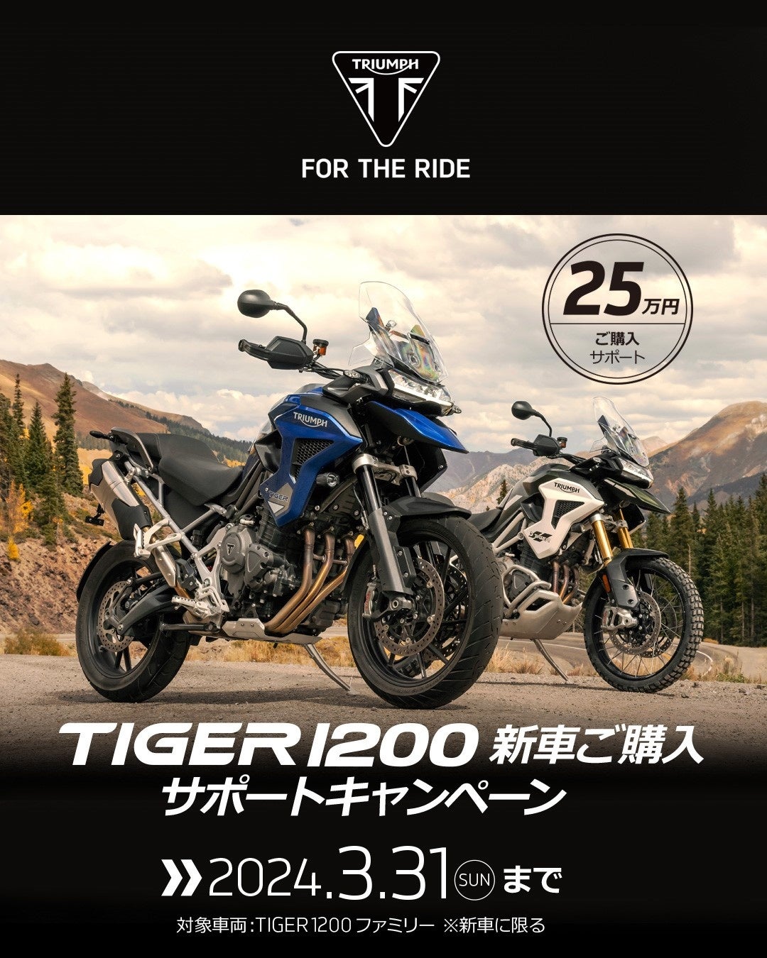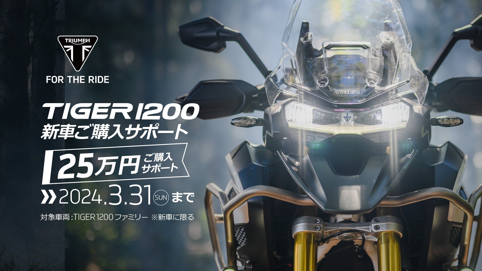【TIGER 1200 ご購入サポート】キャンペーンを12/8~3/31までの期間に開催することをお伝えいたします。