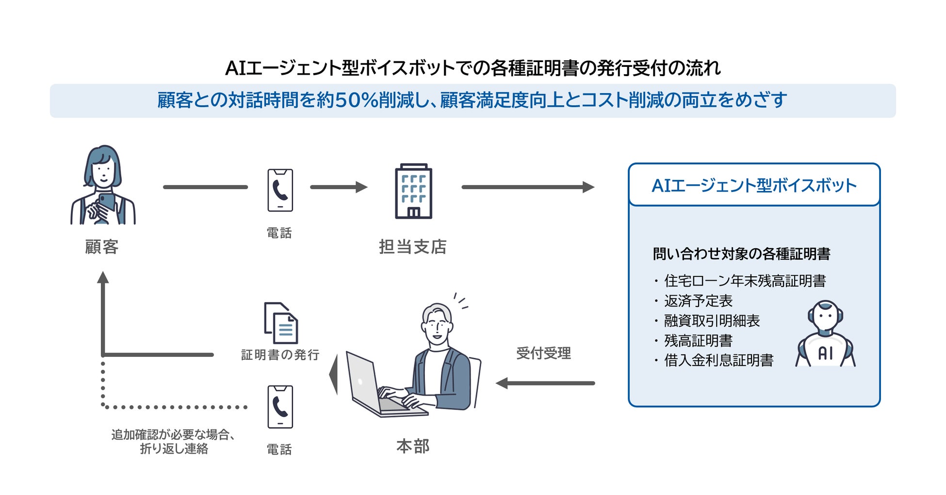 横浜銀行は、新設した証明書発行申請窓口の電話自動応答サービスに、「MOBI VOICE」の新機能である「AIエージェント型ボイスボット」を導入しました。