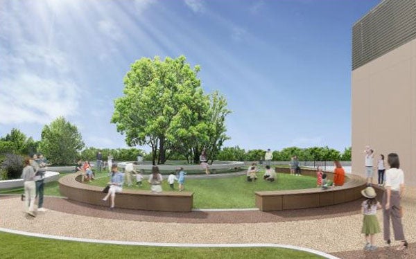 さらに、スカイガーデン東側には新たに人工芝とベンチを設置することで、ご家族でくつろいだり、四季折々の花々も楽しむことができます。