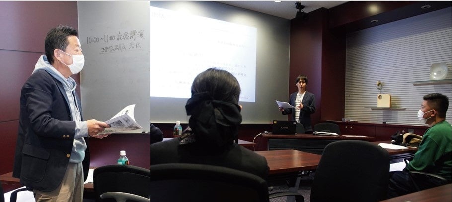 具体例を出しながら分かりやすく丁寧に説明。本を出すときのポイントについても詳しい説明があり、卒業生たちは熱心に聞き入っていました。