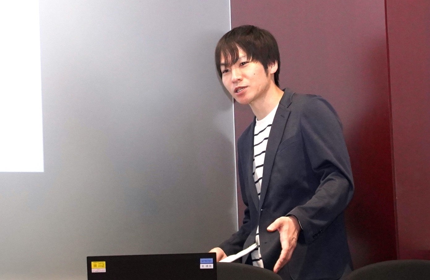 遠方から上京のため、少し遅れて会場入りした大賀さんは、落ち着いた雰囲気の会社経営者。
