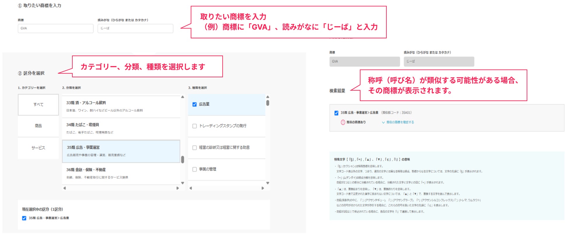 本サービスには、出願を希望する商標と既存の登録商標との出願を希望する商標の類似検索を支援する機能を備えています。また、シンプルな価格設計と直感的な操作で、ユーザーが負担なく商標出願の準備を進められるようサポートします。このサービスにより、商標出願の手続きをより効率的かつ安価に行えるようになります。