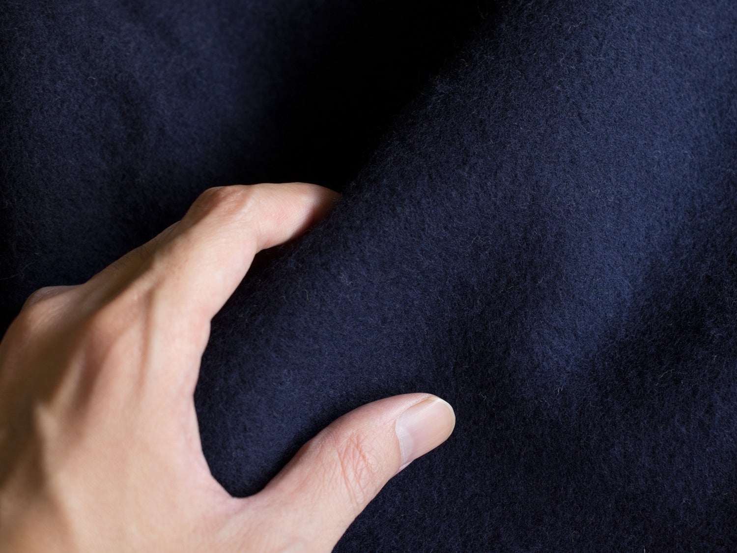 「素材の風合いを損なわない」をポリシーに、ラムウールを主原料に原料染めで造られた生地を使用。