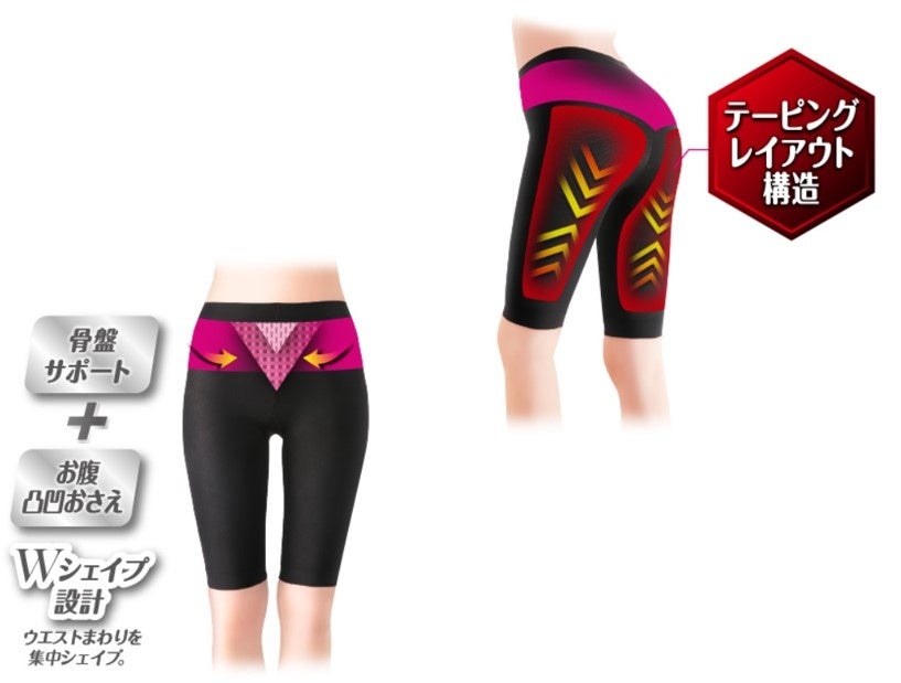 骨盤サポート+お腹凸凹おさえの「Wシェイプ設計」でウエストまわりを集中シェイプ。