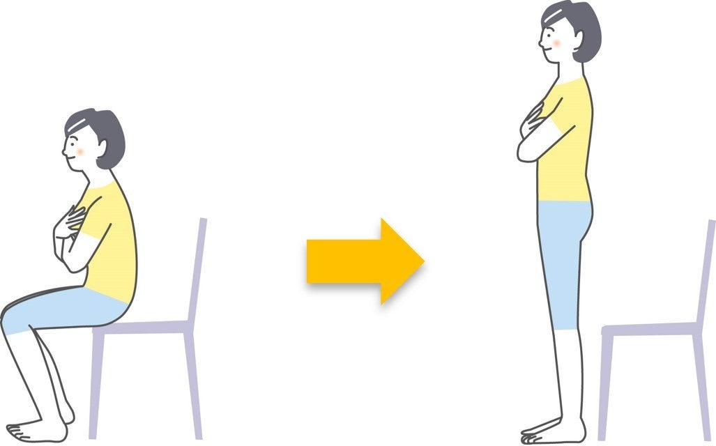 ②背筋を伸ばし、手は胸の前でクロスさせ、