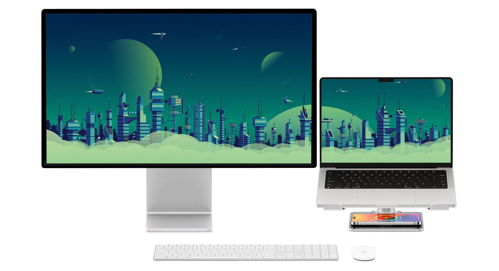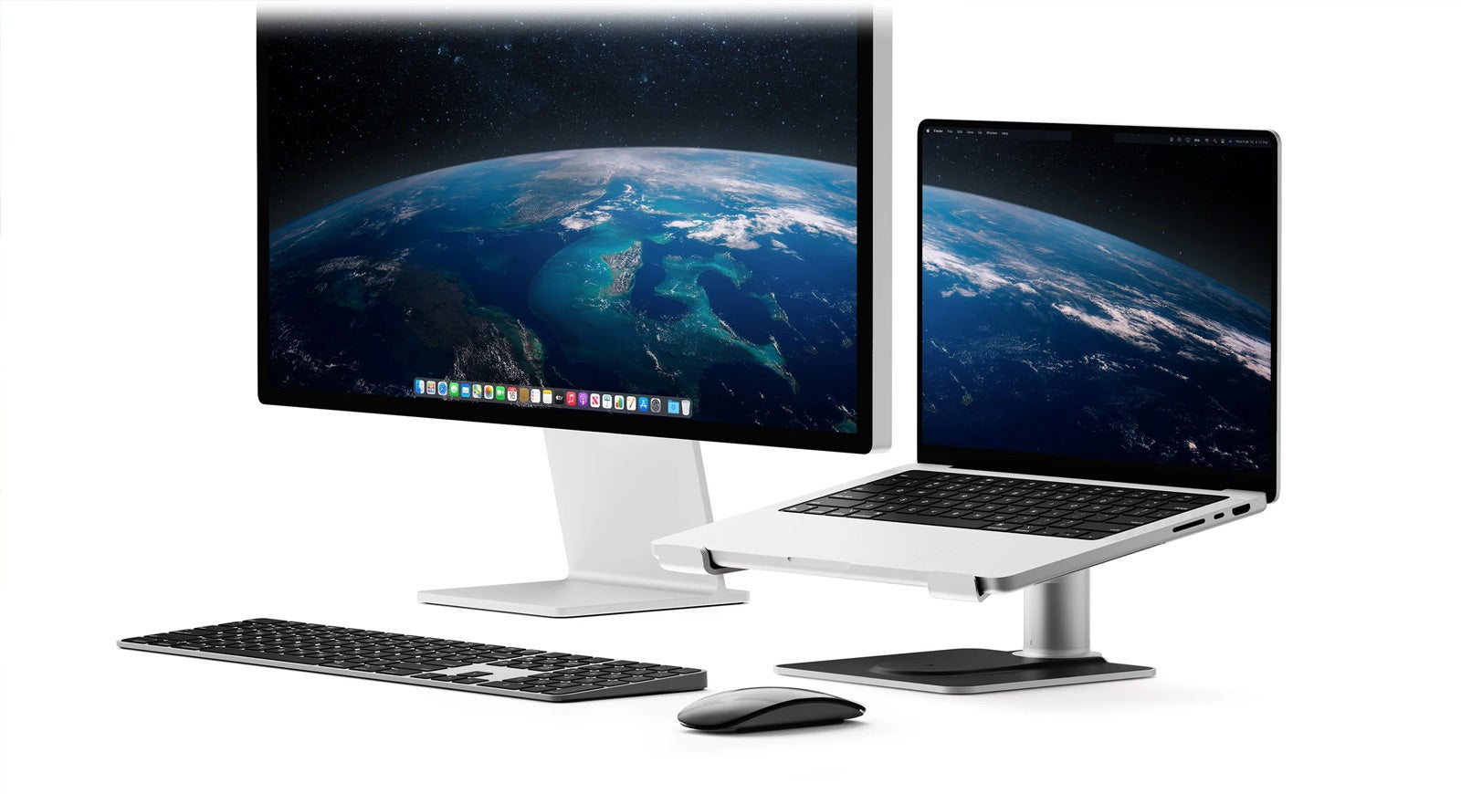HiRise Proのシルバーとブラックのデザインは、AppleのMacBook ProやシルバーのStudio Display、Magic Keyboard、Magic MouseなどのProラインナップに調和するようにデザインされています。