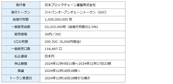 ■ジャパンオープンチェーントークン(JOC)一般販売概要