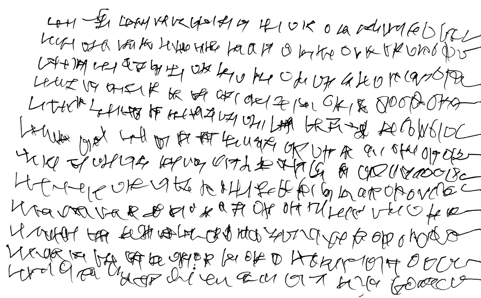 ト)と、お料理すること、絵を描くことが大好き。シール、スタンプ、ドリッピングなど様々な絵作りをするなか、一番気に入っているものは、古代なのか宇宙なのか未来の言語なのか、彼女なりのタイポグラフィを ノート一面に書き綴っているものである。