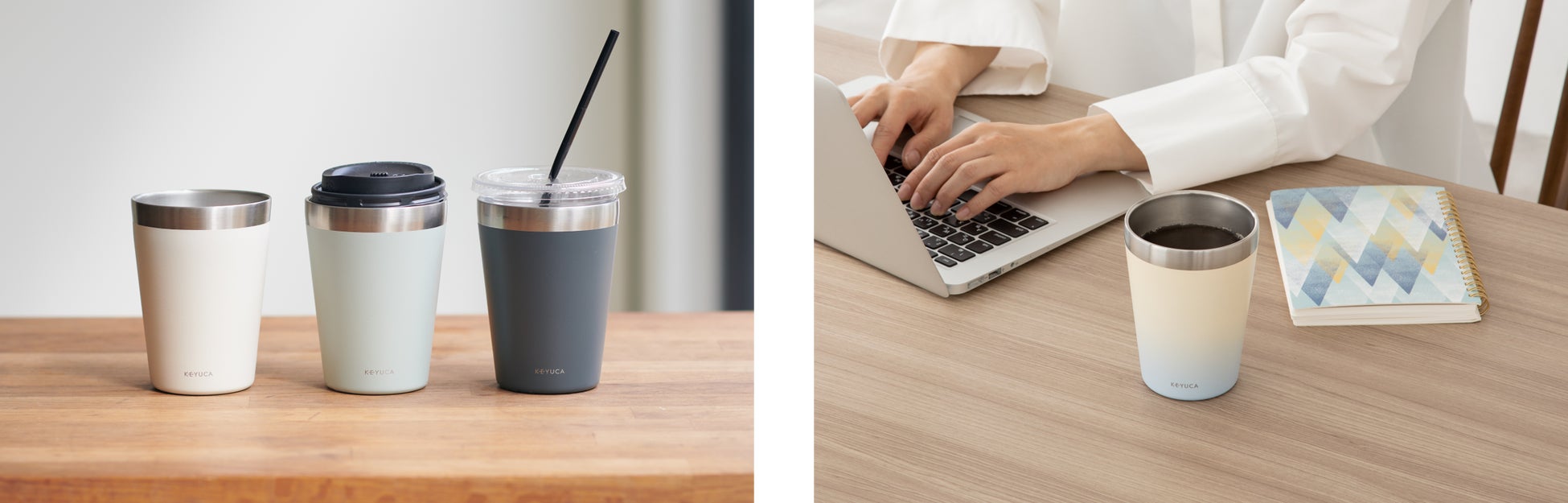 「caffio ステンレスタンブラー」は2020年に発売以降、累計60,000個を売り上げる人気を誇り、夏の定番商品としてお客様よりご好評いただいております。直接飲み物を入れて使用すればタンブラー、コンビニやカフェでテイクアウトした飲み物を入れて使用すればカップホルダーとしてご活用いただける便利な2wayアイテムです。真空2層構造になっているため、保温保冷効果があり、季節を問わず飲み物を長時間美味しくお楽しみいただけます。さらに、冷たい飲み物をいれた際は、暑い夏でも結露を防ぐことができ、持ち運びやオフィスのデスクでご活用いただくのにもぴったりです。