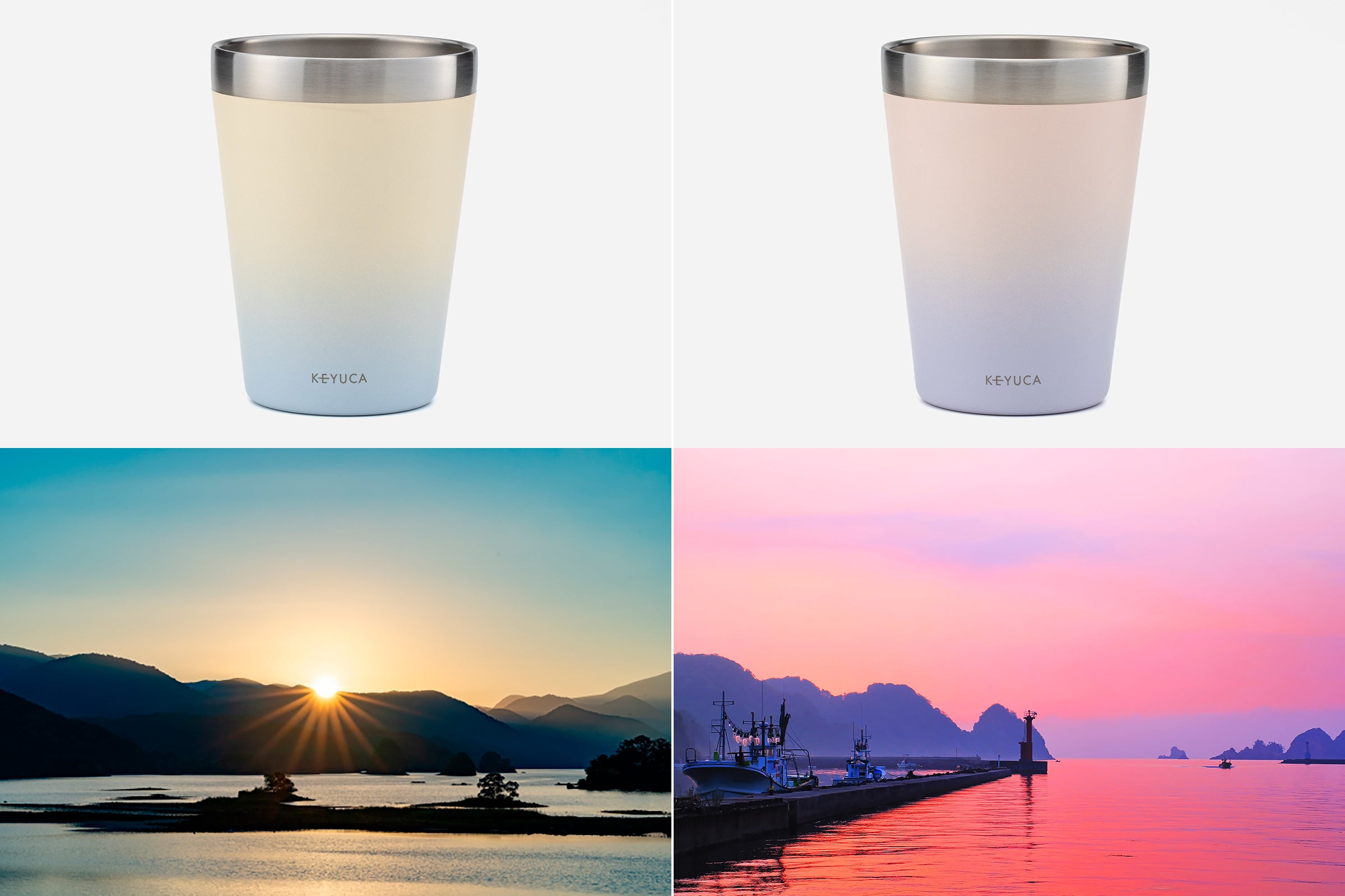 今回登場する新色は、朝焼けをイメージしたイエローとブルーのグラデーションカラーと、夕焼けをイメージしたピンクとパープルのグラデーションカラーの2色展開です。美しいグラデーションカラーが、いつものティータイムや、仕事中のリラックスタイムにいっそう彩をもたらします。