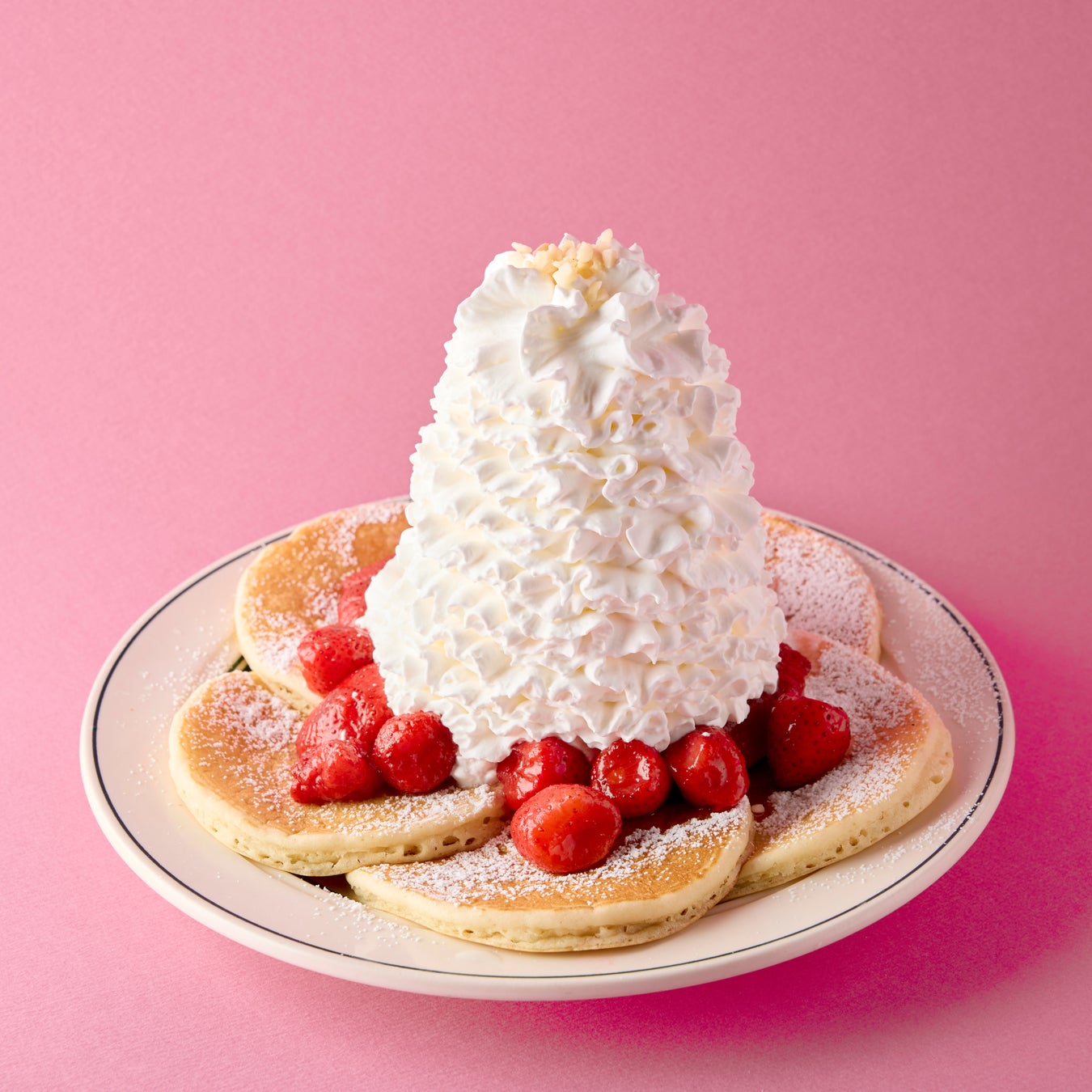 「パンケーキ ストロベリー、ホイップクリームとマカダミアナッツ」