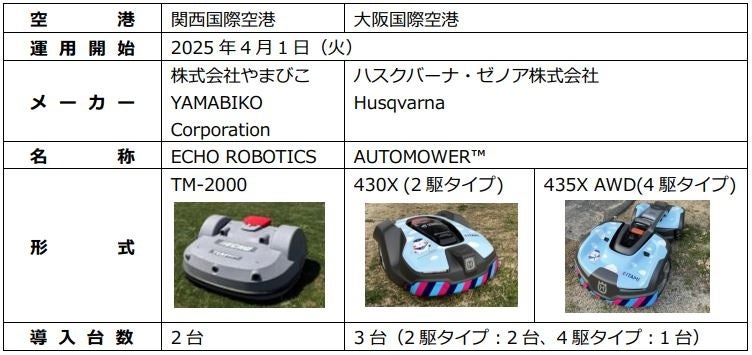 関西エアポート株式会社は、2025年4月1日(火)より関西国際空港と大阪国際空港にて、ロボット芝刈機の本格運用を開始したことをお知らせします。