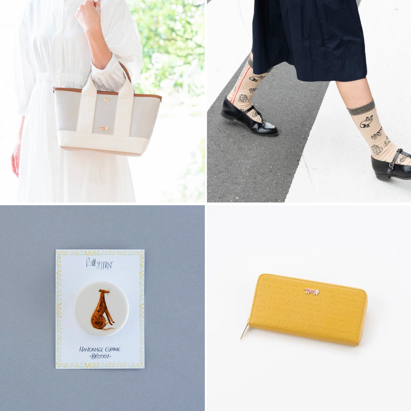 おでかけ好きなお母さんのために、機能性と可愛さを兼ね備えたものや個性的で持つと気分がアップするもの、色や形もバリエーション豊富なバッグを集めました。いくつあっても嬉しいANTIPASTのソックスや、ポーリー・ファーンが手描きで仕上げたブローチやリサ・ラーソンのお財布も。お母さんが喜ぶ顔を想像しながら、選んでみては。