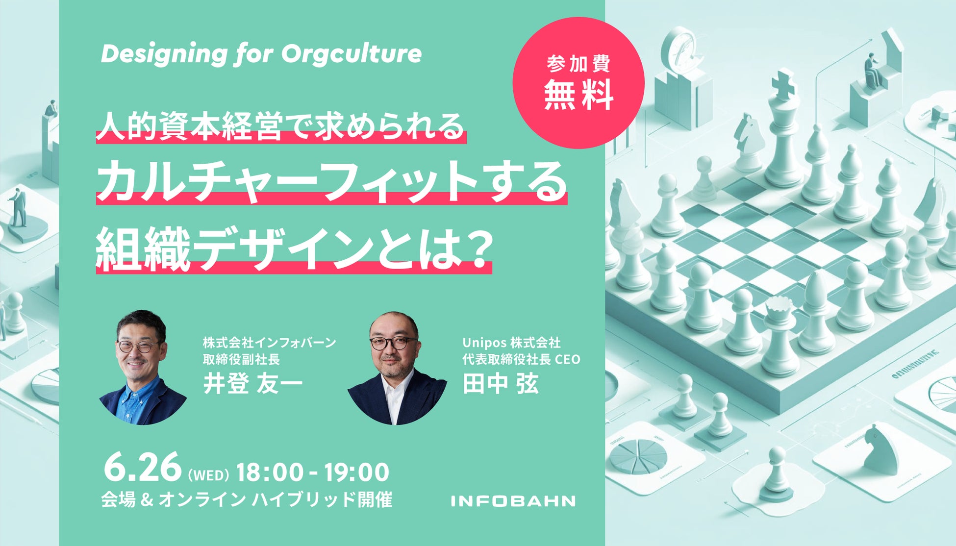 株式会社インフォバーン(本社:東京都渋谷区、代表取締役会長:小林弘人、代表取締役社長:田中準也、株式会社メディアジーン関連企業、以下インフォバーン)は、2024年6月26日(水)に、『人的資本経営に求められる、カルチャーフィットする組織デザインとは?』と題して無料イベントを開催いたします。