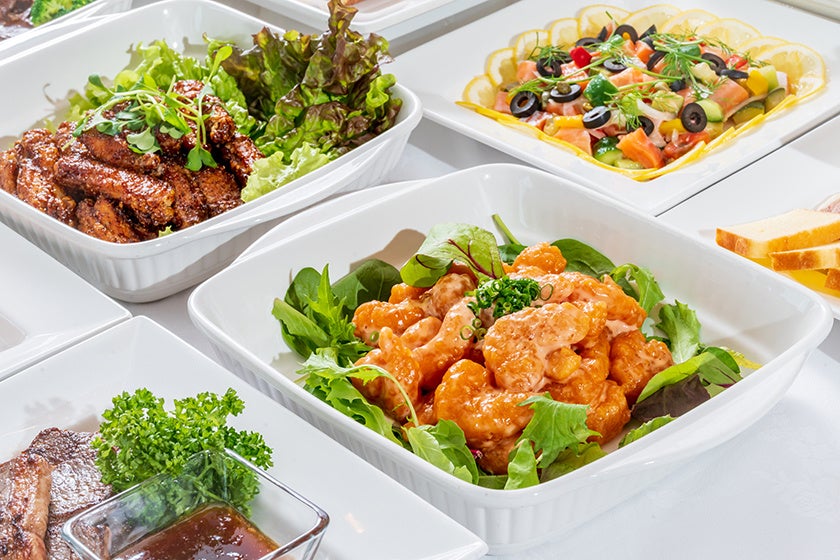 船内レストランでは、エビやチキン、デザートなど多彩な料理が食べ放題で、ビールやカクテルなどのお酒も充実。さらに営業時間中に2回、60分間の特別クルーズも行うため、夕陽や夜景など移りゆく神戸の景色もお楽しみいただけます。
