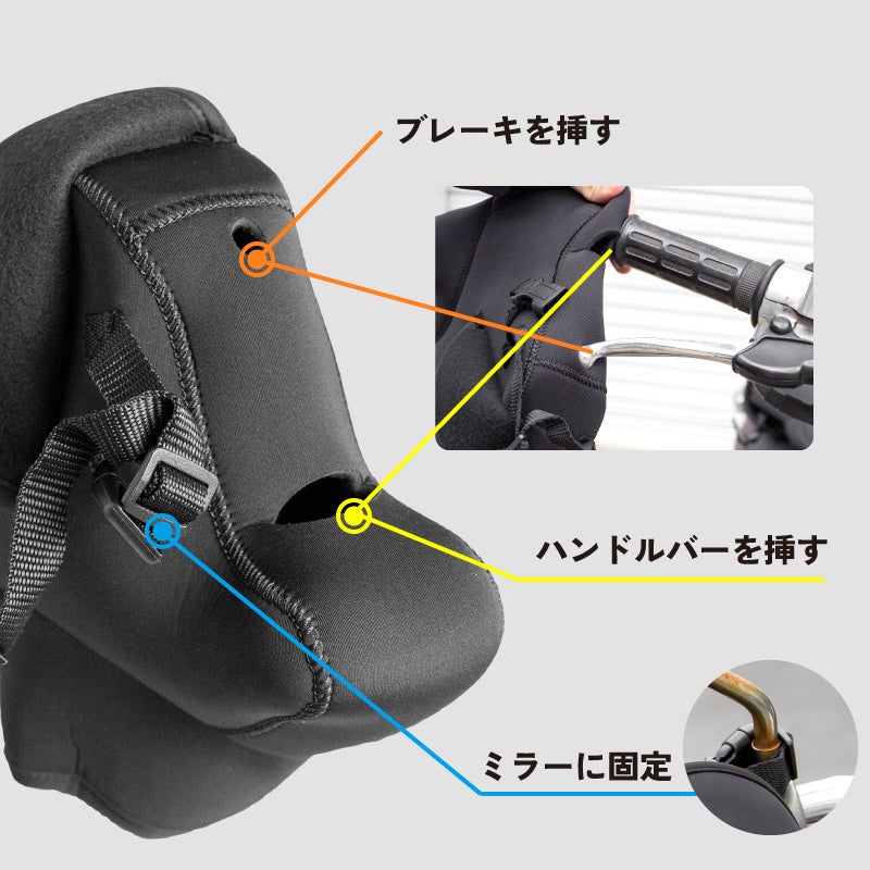 かじかんで辛い指先の冷えに対策に効果的。ハンドルカバーを取付ける事でハンドルの中は[暖かく]
