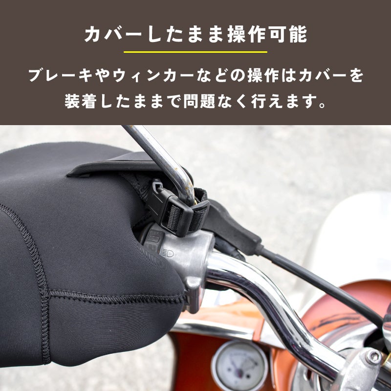 厚手のネオプレーン製は防風、防水に優れておりハンドルカバー内を快適にします。