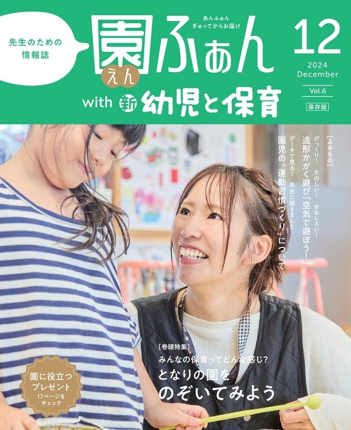 首都圏・関西・北海道・九州エリアのあんふぁん・ぎゅってを配布する8727園にお届け。幼稚園・保育園・こども園の先生を元気にしたい!という思いから生まれた先生のための情報誌。小学館「新 幼児と保育」と協同で、先生方に喜んでもらえ、なおかつ役に立つ情報を発信しています。