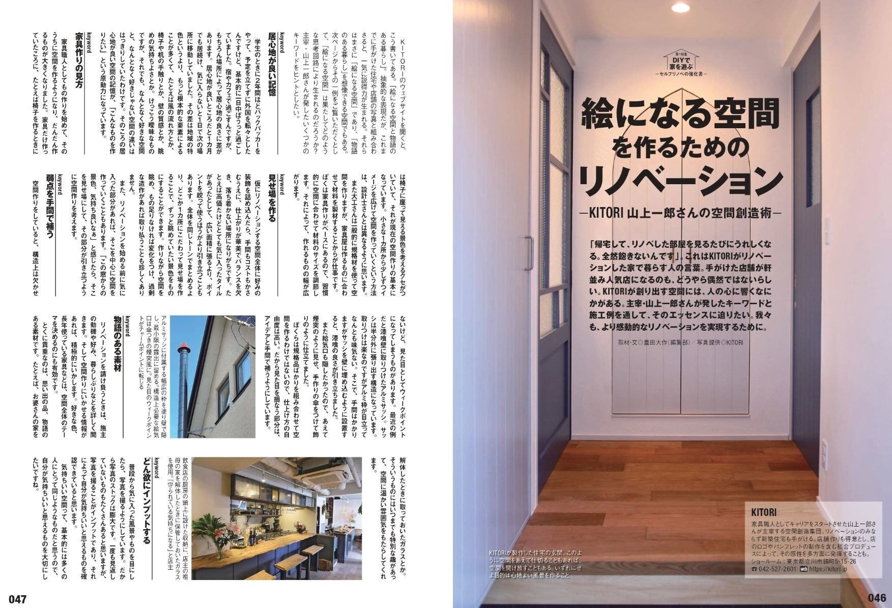 リノベーションは暮らしを便利にするという実利だけでなく、暮らしを楽しくさせる創造的なもの作りである。「物語を感じる空間」をテーマに、クリエイティブなリノベーションを手掛けるKITORI・山上一郎さんをフューチャー。作例はもちろん、そのデザインや発想の思考法、資材の入手方法や施工方法までを徹底取材。