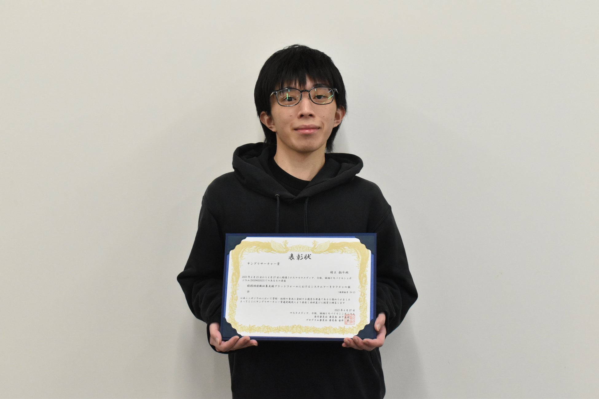 このたび、DICOMO2025においてヤングリサーチャー賞をいただき、大変光栄に思います。本研究を進めるにあたり、日頃から優しくご指導いただいている山内正人教授をはじめ、共同研究先の株式会社Bridgeの皆様には多大なご協力をいただき、心より感謝しております。今回の受賞を励みに、引き続き研究活動に取り組み、学術的にも社会的にも意義のある成果を生み出せるよう努めてまいります。また、iUにおける研究活動の支援や学生へのサポートがさらに充実し、より多くの挑戦ができることを期待しています。そして、このような受賞の機会だけでなく、日々の研究活動にも継続的な支援と関心が寄せられるような環境が広がっていけばと思います。