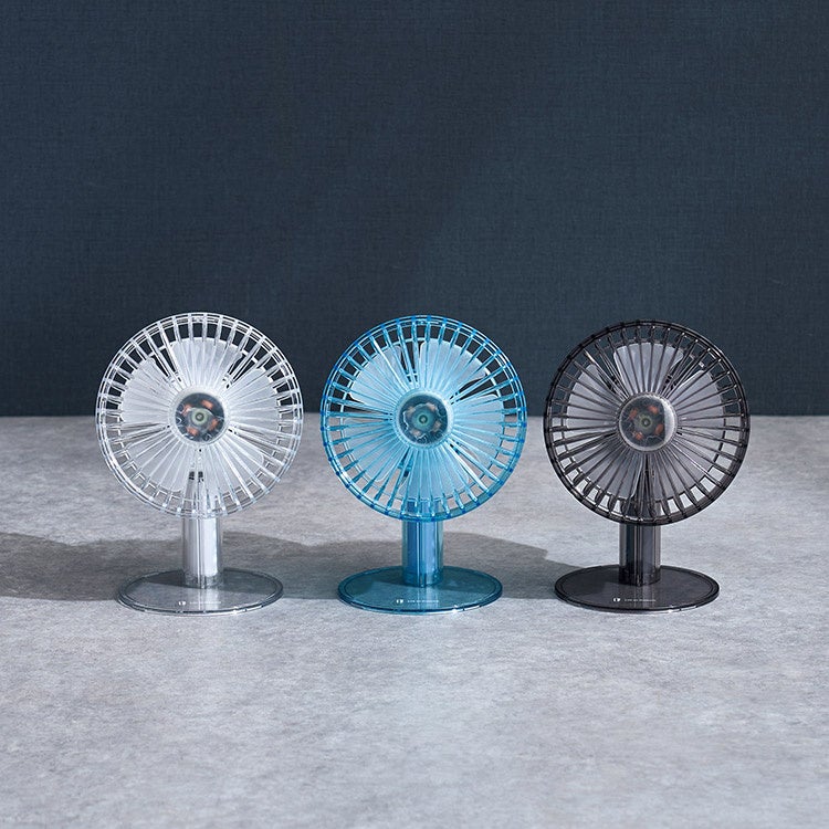 お部屋をポップに彩るクリア素材のデスクファンが登場。