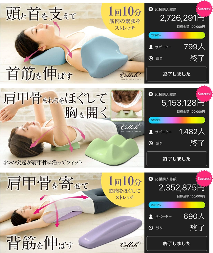 「Cellshストレッチクッションシリーズ」は、これまで多くのご支援をいただき、皆様のおかげで現在4種類までラインアップを拡大することができました。本当にありがとうございます!